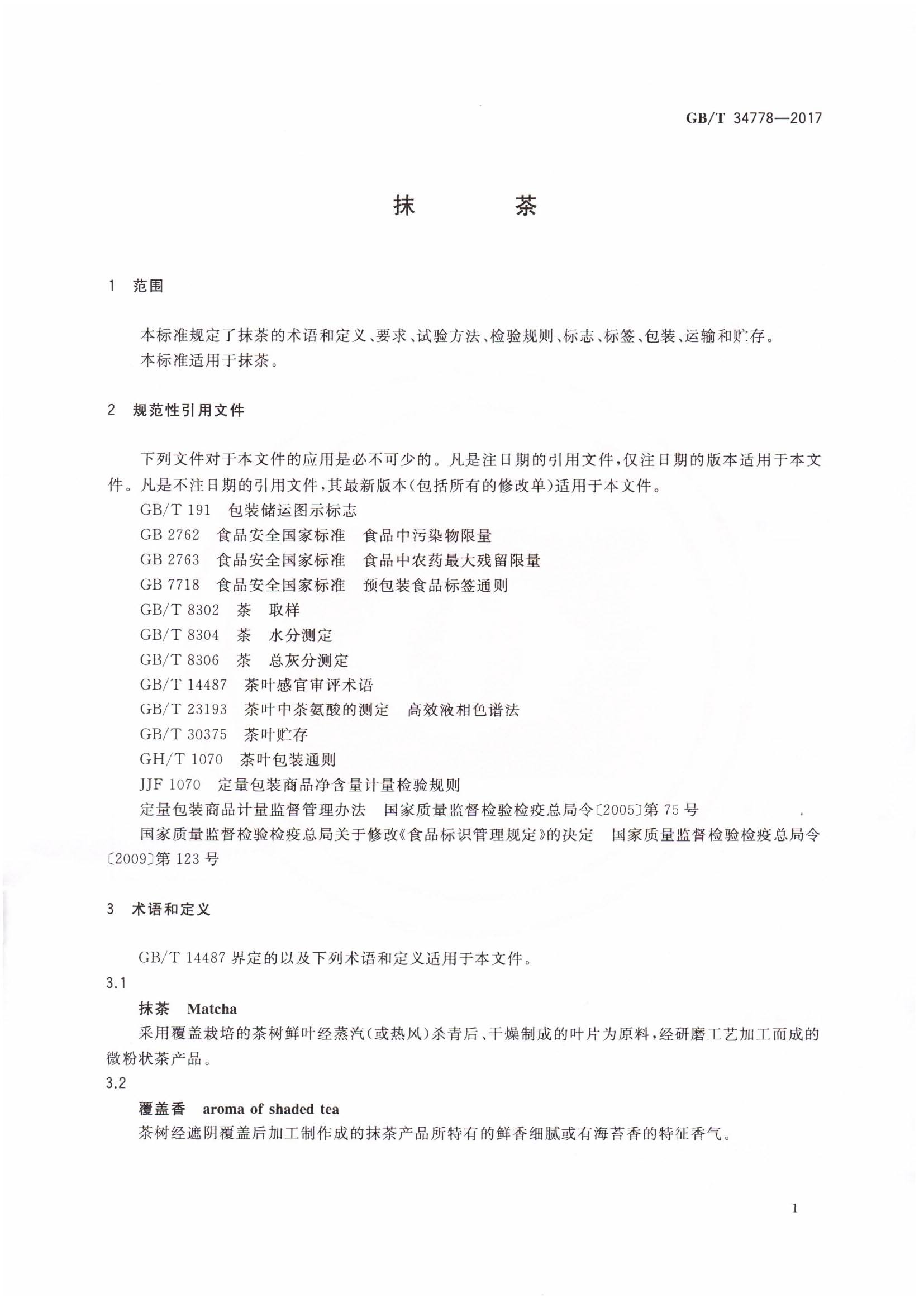 《抹茶》國家標準由浙茶集團牽頭制定,規定了抹茶的術(shù)語(yǔ)、定義、要求、試驗方法、檢驗規則、標志、標簽、包裝、運輸與貯存。抹茶國家標準的首次出臺,對抹茶產(chǎn)業(yè)轉型提升指明了新的發(fā)展方向,也為中國茶產(chǎn)業(yè)邁向標準化的道路上注入了一股“新力量”。